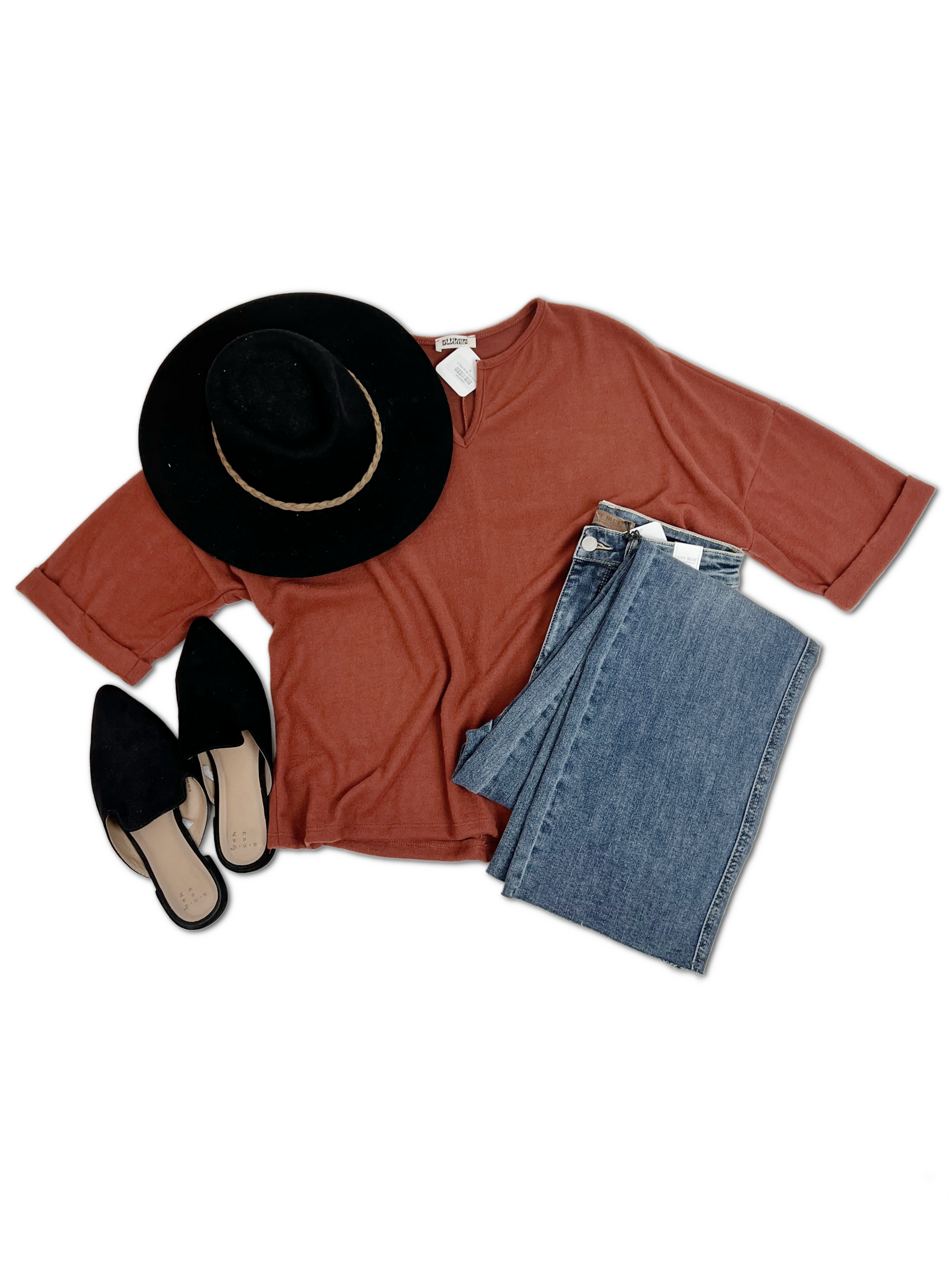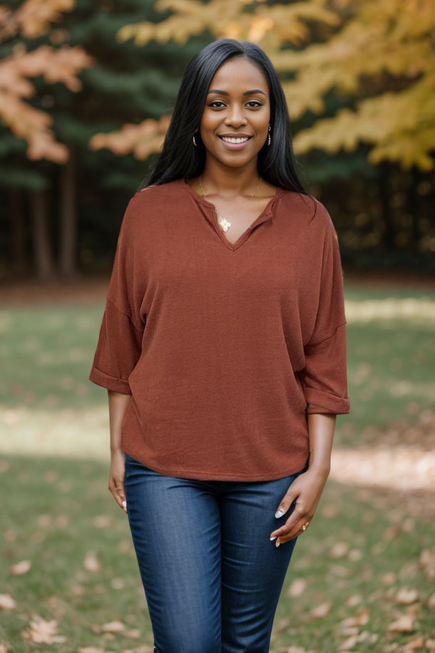 Part of you and part of fashion, this 3/4 sleeve knit top features a playful v-neck and lightweight feel. No need to take yourself too seriously, have fun with this quirky and stylish addition to your wardrobe!