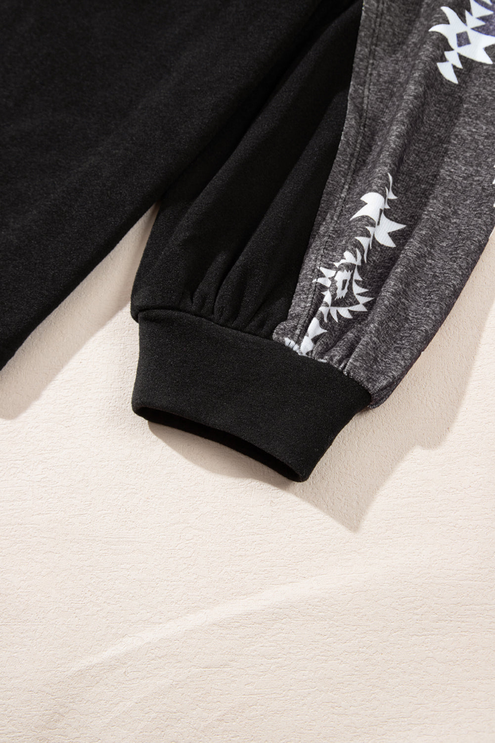 Apricot Casual Ethnic Print Patch Long Sleeve Top