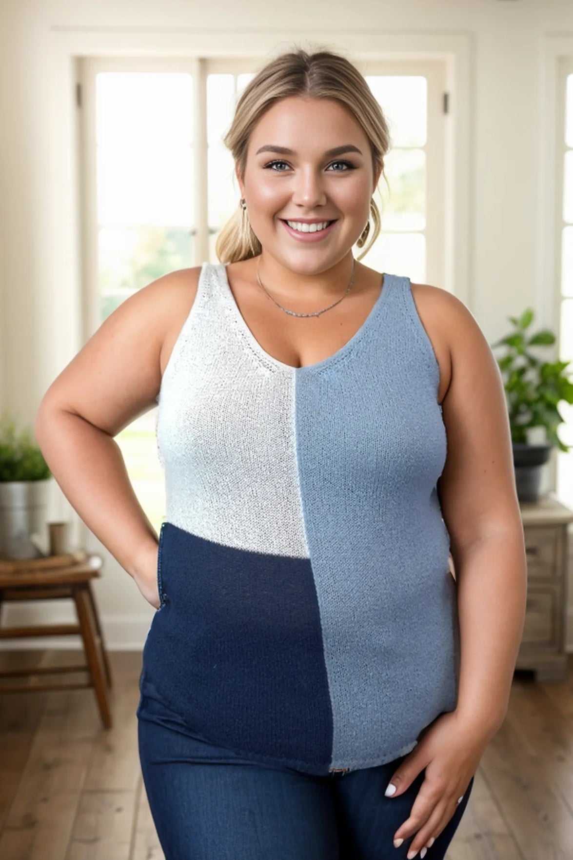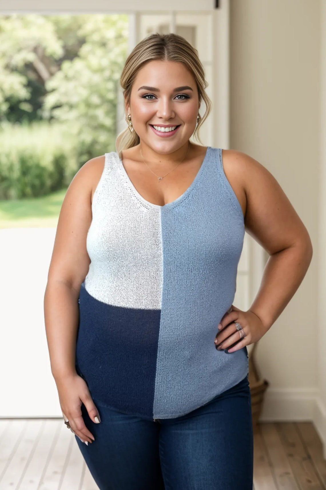 Embrace beach vibes with Beach Blues - Tank. This color block tank top is sleeveless, light, and breathable, making it perfect for warm days at the shore. Stay cool and stylish with this must-have tank.