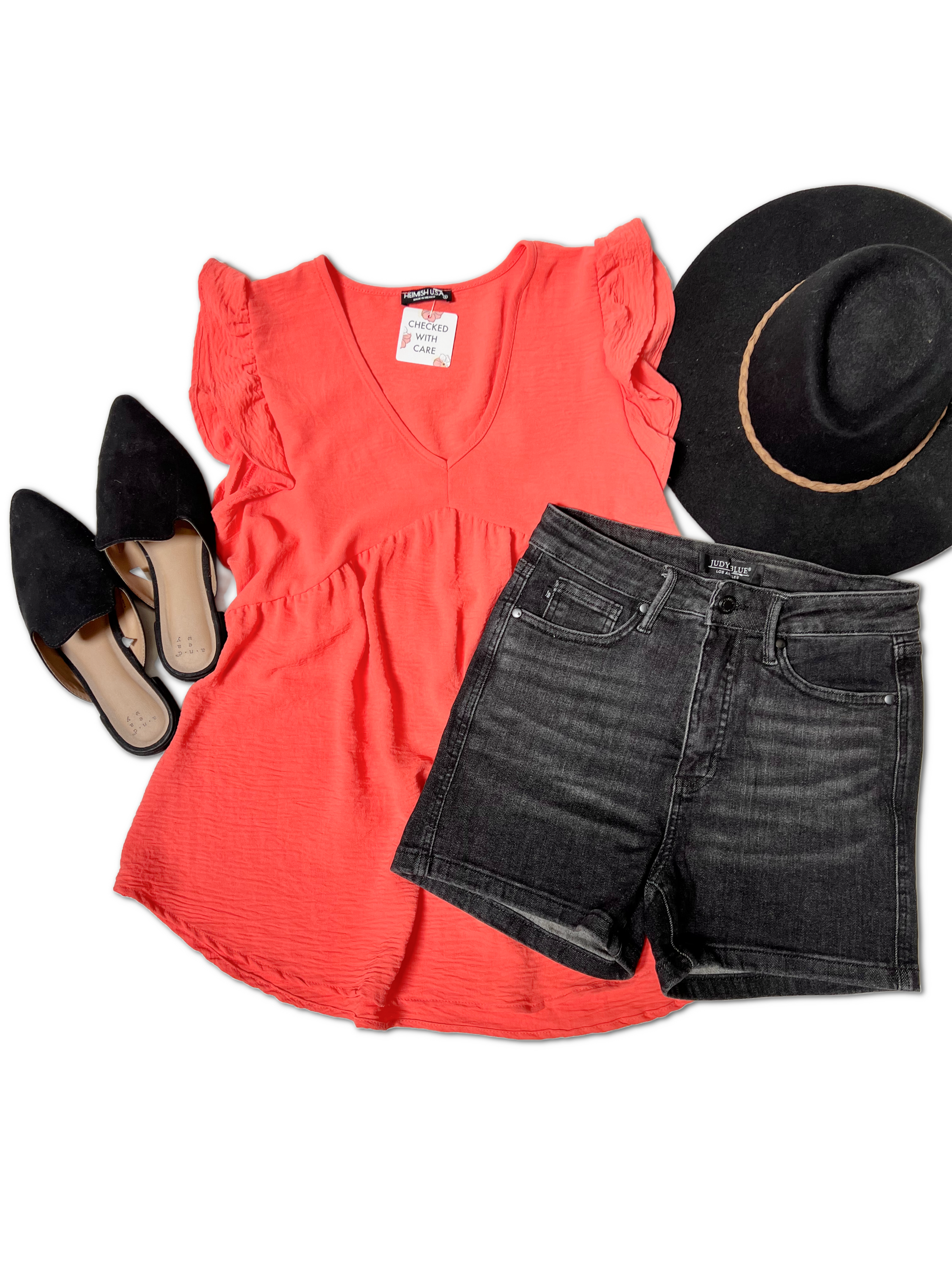 Indulge in the whimsical feel of our Feel The Flutter Top - complete with butterfly short sleeves, a stylish v neck, round hem detail, and a flattering babydoll top fit. This solid tee will make your heart flutter every time you wear it.
