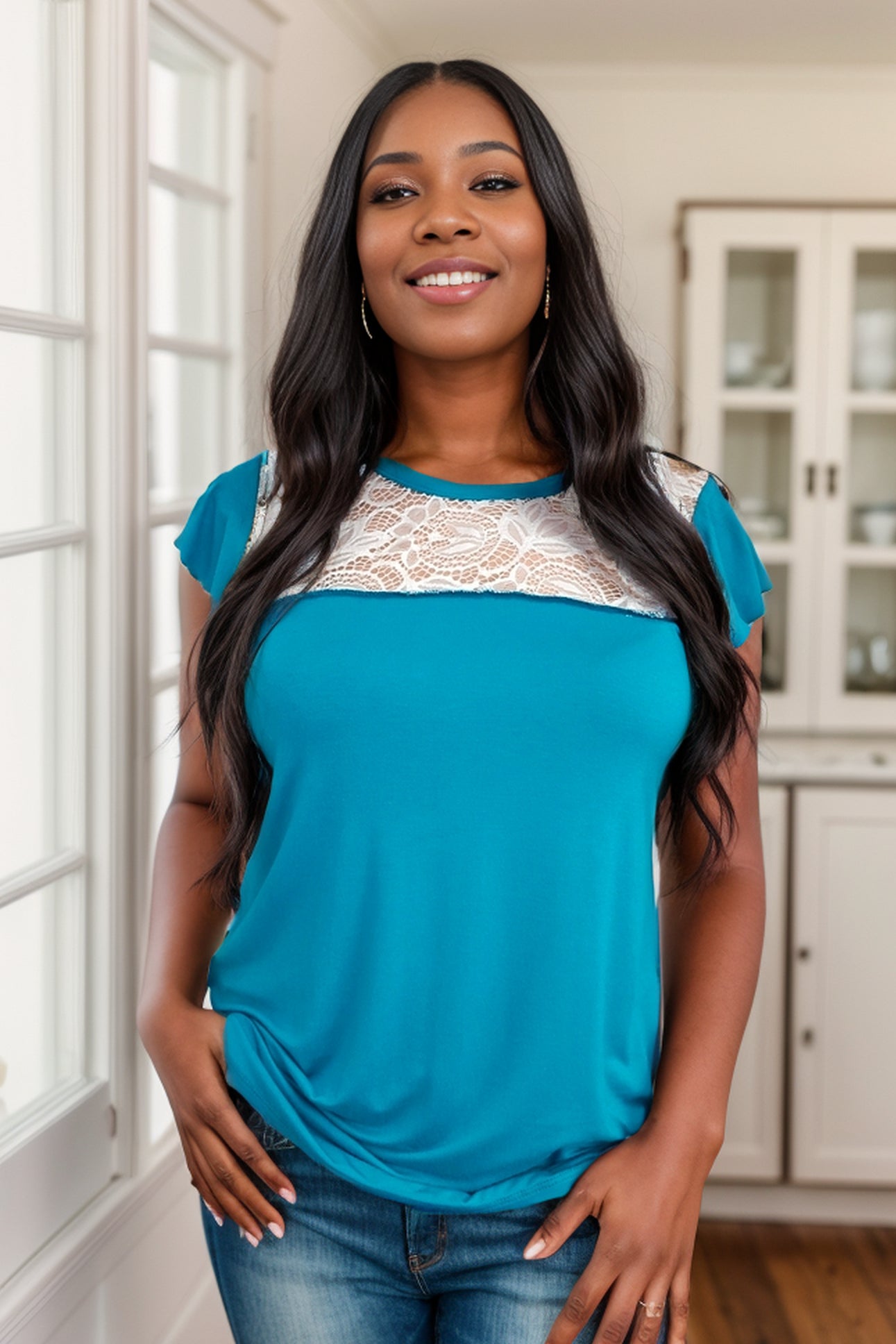 Elevate your everyday look with the Graced With Lace top! The round neckline flatters all figures, while the elegant lace insert adds a touch of sophistication. The flutter sleeves give it a playful twist, and the relaxed fit provides comfort. Stay stylish and comfortable all day long!