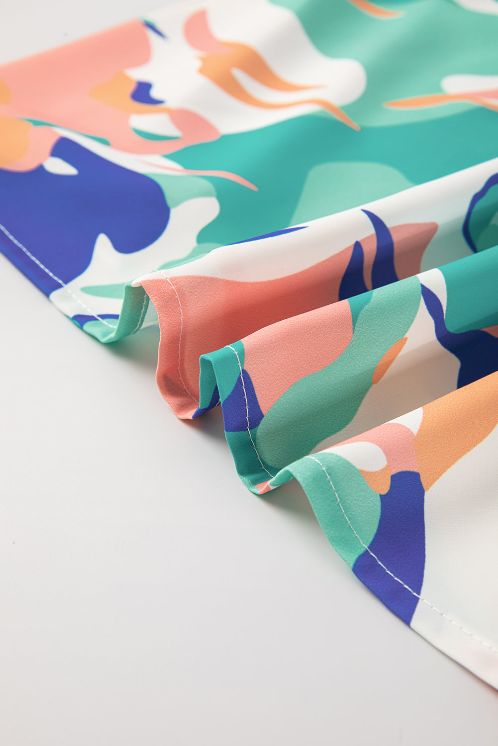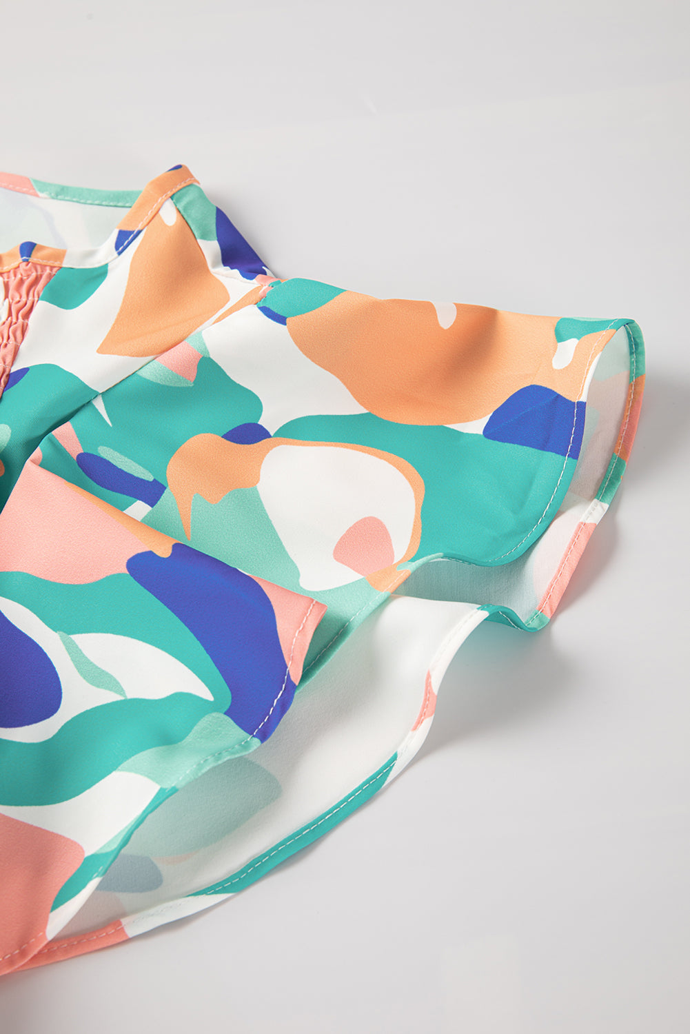 Multicolour Abstract Print Smocked Notched Neck Ruffle Blouse
