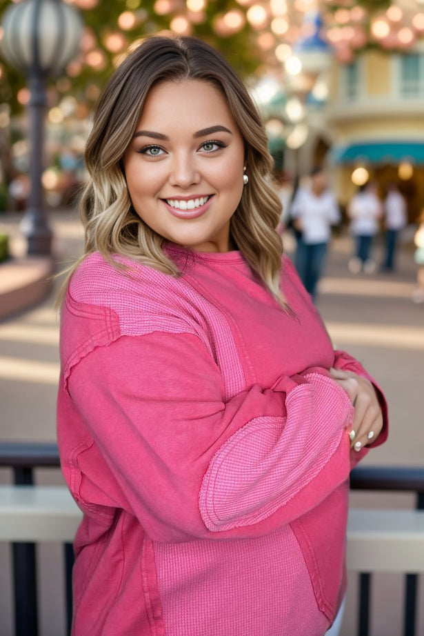 Get ready to cozy up in comfort with My Kind Of Sweatshirt! Featuring a mineral wash and thermal contrast, this relaxed fit sweatshirt is perfect for chilly days. With long sleeves and a banded hem, it's both stylish and functional. Embrace the vintage fuchsia color for a pop of trendy fun!
