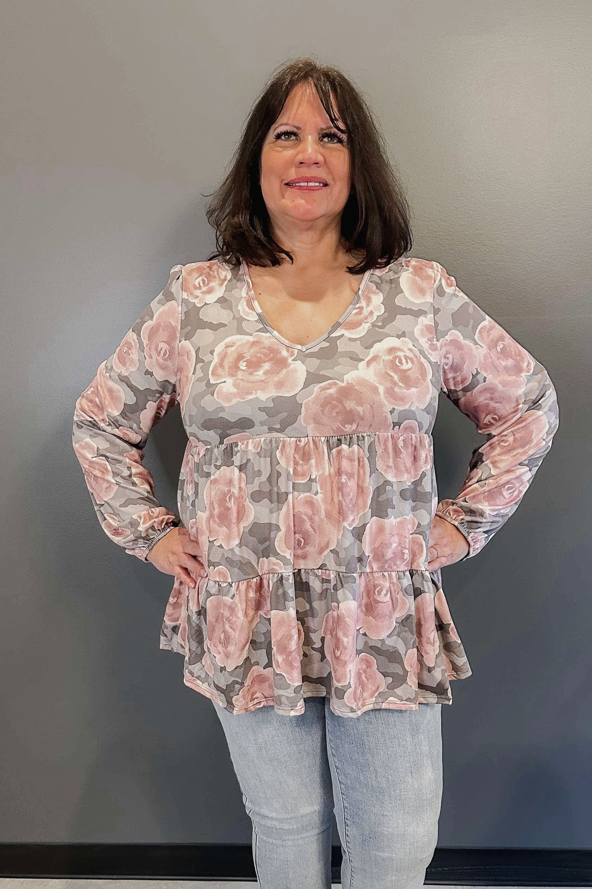 The Mystic Floral Babydoll is the perfect combination of comfort and style. With long bubble sleeves, a v-neck, and an empire hem, it offers a relaxed and flattering fit. The delicate floral print adds a touch of femininity to any outfit.