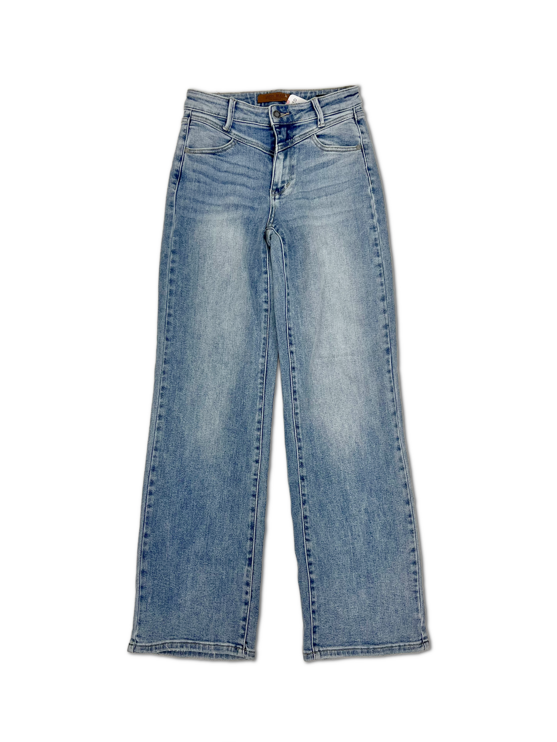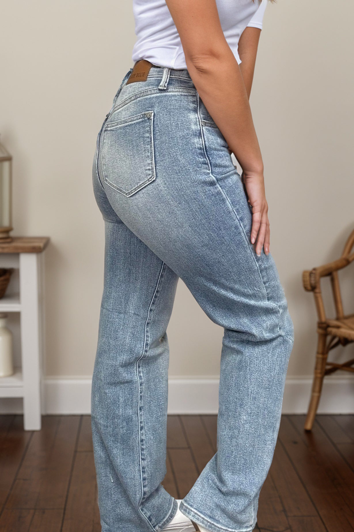 Unleash your retro chic with Never Settle For Less - Judy Blue's. These high-waisted jeans offer great stretch for ultimate comfort, while the front yoke detail adds a touch of unique style. The retro wide leg is perfect for a throwback look with modern comfort. Don't settle for less than fabulous!