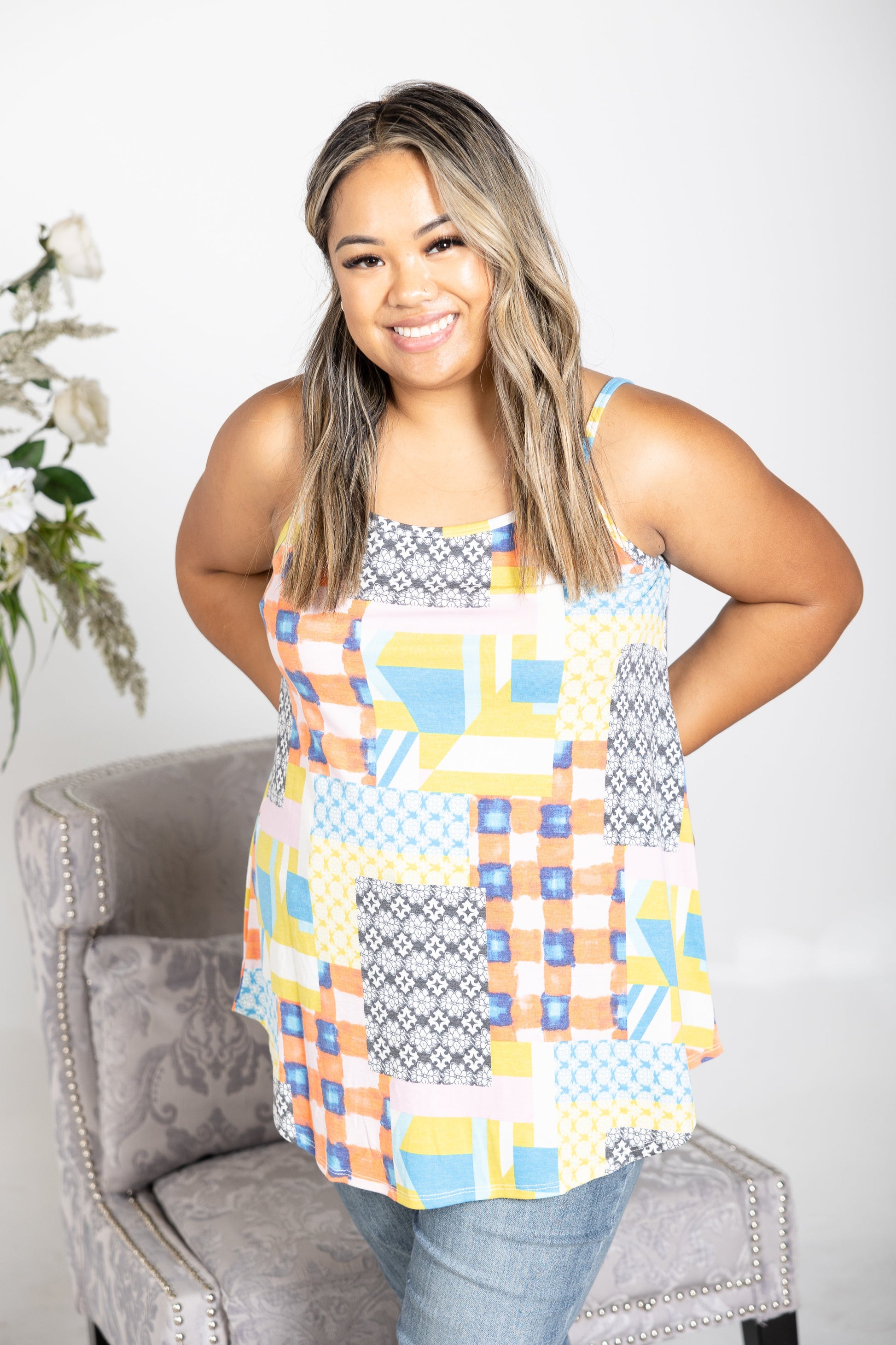That's right! This tank is fully reversible! Wear it as a scoop neck OR a V-neck to best fit the occasion. With a relaxed fit, this top features spaghetti straps and rounded hem.