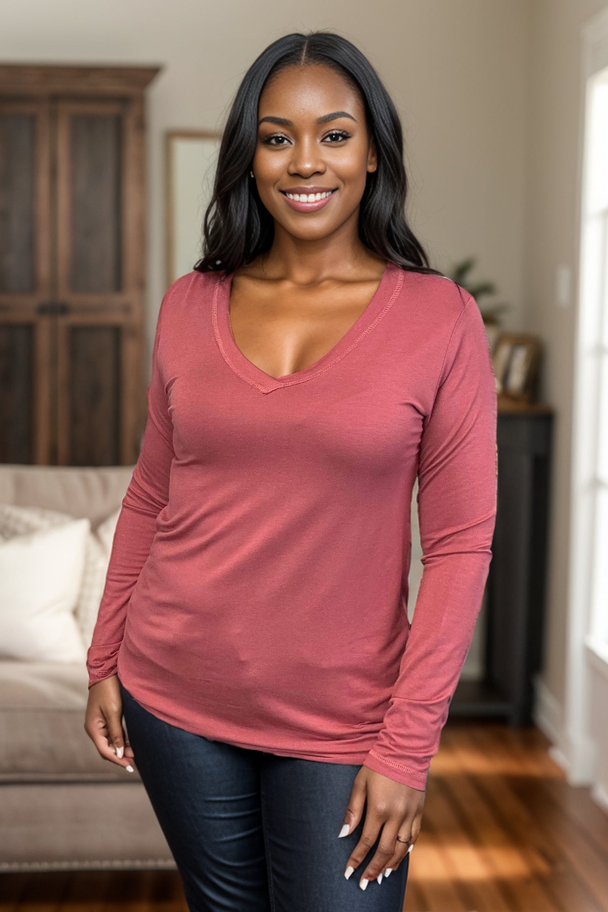 Explore in style with our Take Me Everywhere - Marsala top! Made from a soft jersey knit, this v-neck top features long sleeves and unique reverse stitch details. Get ready for your next adventure in comfort and style.
